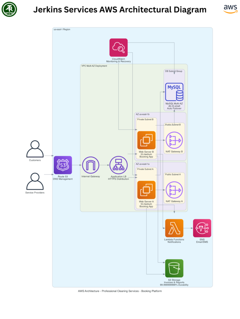 The AWS infrastructure cost approximately $1,250 monthly—significantly less than maintaining aging on-premises equipment while providing enterprise-grade reliability. Jerkin Services can now scale horizontally by adding EC2 instances as demand grows, with S3 automatically handling increasing document storage needs.