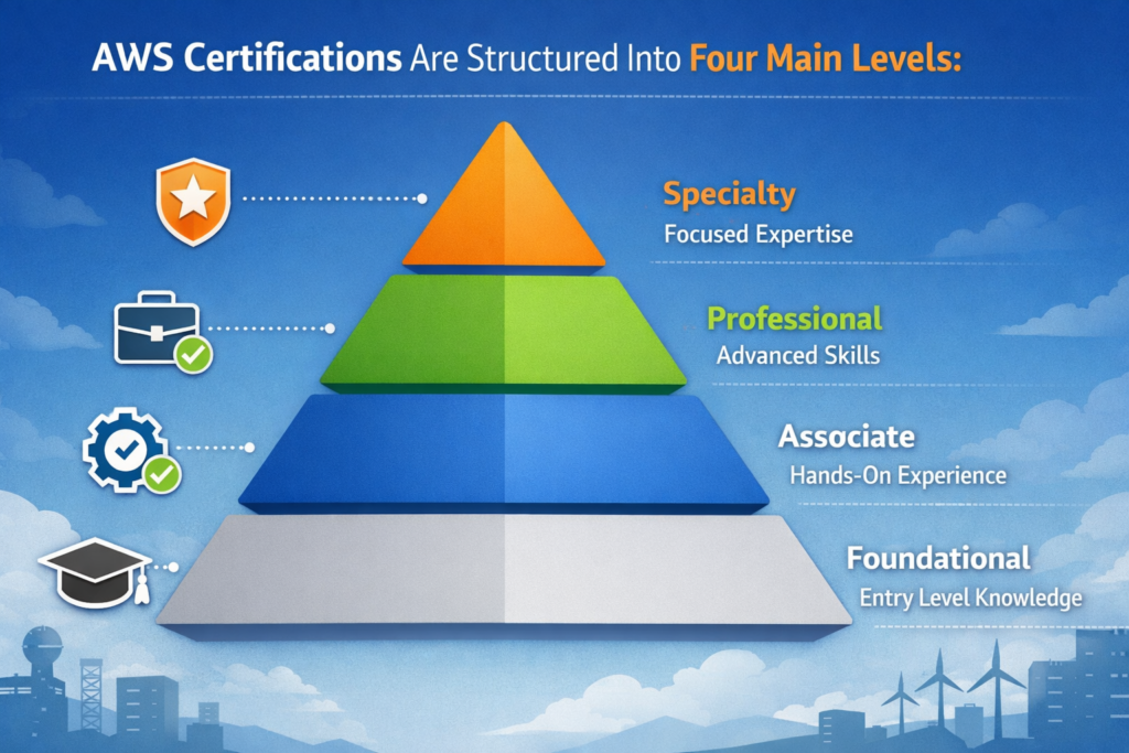 AWS certifications are structured into four main levels: